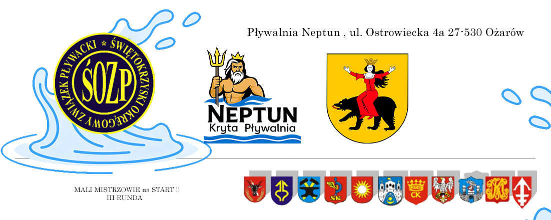 | 4 x 50m | Serie na czas | 9 - 10 | Lista startowa | Wyniki | 4 x 50m | Serie na czas | 9 - 10 | Lista startowa | Wyniki | ||
